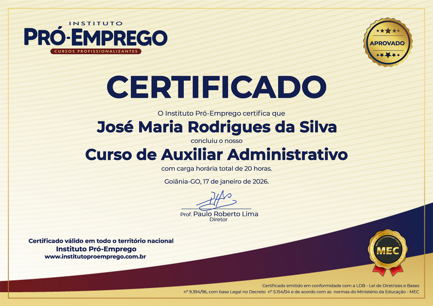 Modelo do Certificado: