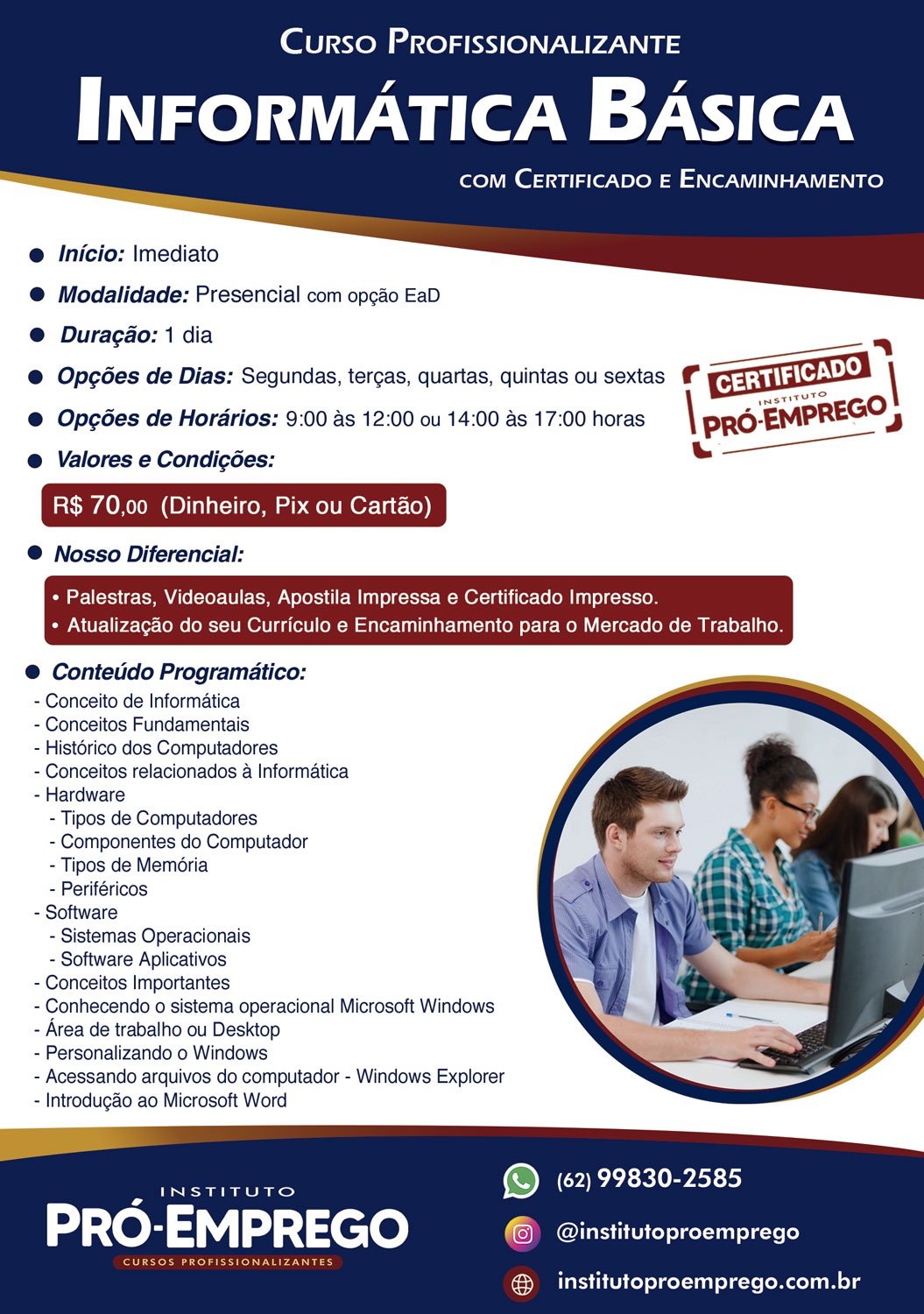 - Palestras, Videoaulas, Apostila Impressa e Certificado Impresso.